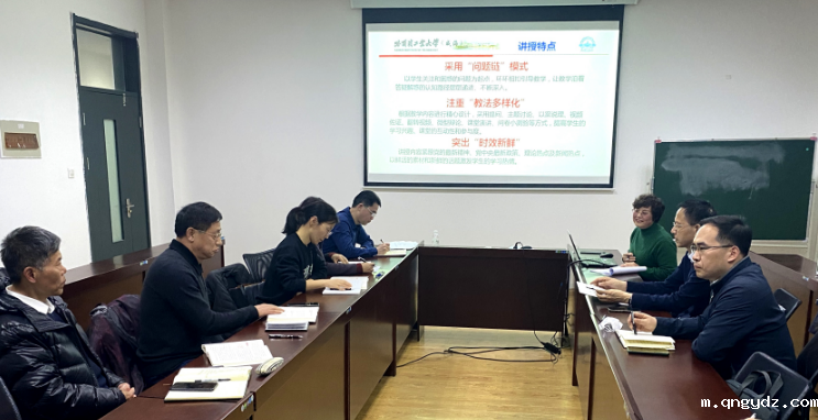 罗宝成总结了开学两周以来该课程的备课和上课情况。薛艳丽副教授就其负责讲授的第八章《习近平新时代中国特色社会主义思想及其历史地位》进行了现场说课和领学讲课。教研室全体教师围绕本章节授课内容进行热烈讨论,就有关授课知识点进行了深入探讨交流,并对该课程下一步的授课内容进行了充分备课。