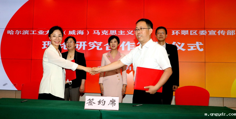 6月9日上午,18luck官方新利娱乐网站官网入口与威海市环翠区区委宣传部签署理论研究合作框架协议。新利娱乐网站官网入口院长张步先,教师吕彩云、姜向荣,环翠区区委副书记于晓光,区委常委、宣传部部长、区委教育工委书记沈燕萍出席签约仪式。