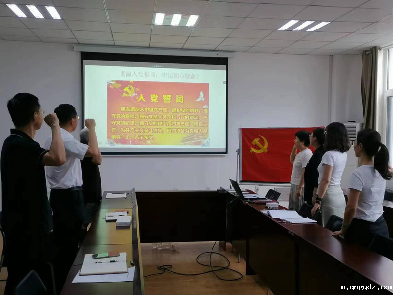 在党支部副书记郭小靓的带领下,与会全体同志面向党旗进行了庄严宣誓,重温入党誓词,深刻感悟共产党人的初心与使命。